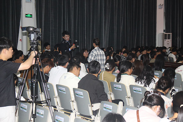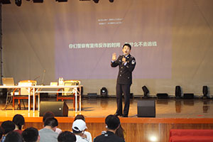 针对刚入学新生法制思想淡薄,防诈意识不强这个情况,杨大首先就一些基本法律常识与现场的学生进行了交流互动,他通过理论联系实际案例的方式,深入浅出,娓娓道来,他用风趣而接地气的语言为同学做了一堂生动的普法教育课。接下来,他运用发生在我们身边的案例和令人醒目的数据为大家展示电信网络诈骗给我们带来的危害,并分析了威尼斯官网近年来的电诈案件情况,语言幽默风趣,台上台下互动热烈,最后杨大用有奖竞答的方式,为同学带来了“肥肥小警”的礼物,让同学们更加深刻了解和掌握了防骗知识。