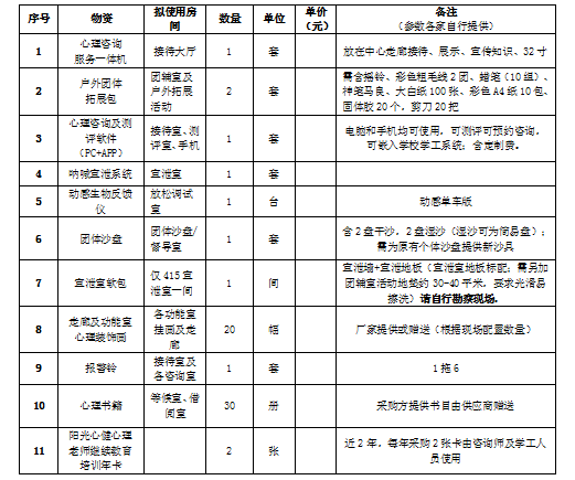 根据2019年建设计划,拟对威尼斯官网心理健康中心相关设备进行公开招标询价,欢迎符合资质要求的优质供应商参与投标。