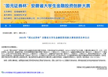 - 2021-08-25喜报!威尼斯官网学子在第六届安徽省大学生金融投资创新大赛中再创佳绩