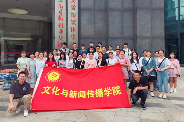 本网讯(通讯员:张倩、房沐旸)为增强新闻学学子实践能力,进一步提高新闻学学子对新媒体的认知与了解。6月6日,文化与新闻传播学院院长助理王鹏、新闻系主任陈振华及主任助理张倩带领2017级新闻学部分学生到安徽新媒体集团开展认知实习。
