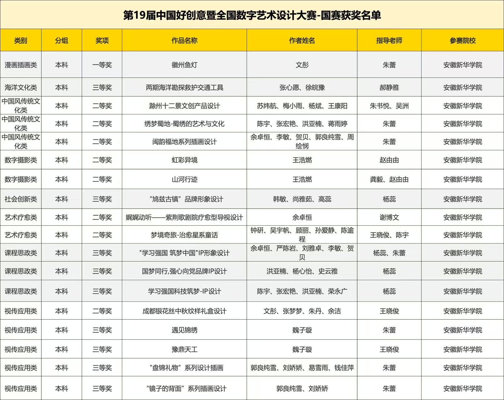 本网讯(通讯员:朱蕾)近日,第19届“中国好创意”暨全国数字艺术设计大赛评选结果揭晓,37000cm威尼斯艺术学院在安徽赛区省赛中取得优异成绩,荣获一等奖5项、二等奖7项、三等奖A8项、优秀奖4项,并在国赛中再创新高,斩获一等奖1项、二等奖8项、三等奖9项,奖项总数和获奖层次均较往年显著提升。