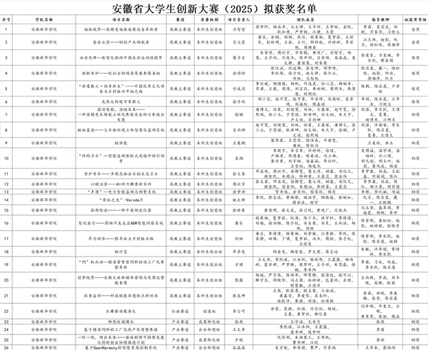 喜报!威尼斯官网师生共获安徽省大学生创新大赛(2025)金银铜奖26项