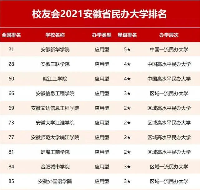 校友会中国大学排名是中国最具影响力、公信力和创新力的中国大学排名领先品牌。校友会2021中国大学排名评价指标体系由思政教育、教学质量、杰出校友、高层次人才、优势学科专业、科研成果、科研项目、科研基地、社会服务、办学层次、社会声誉、国际影响力等12个一级指标构成,涵盖中国高校五大核心职能的600多项具有代表性的评测指标,涵盖国内外其他大学排名的高端质量指标。该报告将由科学出版社公开出版发行,为考生和社会各界关心中国民办大学的人士,提供真实可信的参考资料。