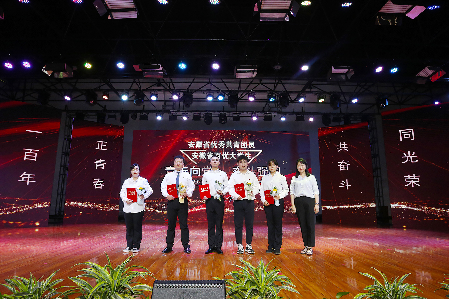 第一篇章中,对优秀共青团干、新媒体建设先进个人、青年标兵、校级十佳大学生代表、安徽省优秀共青团员、安徽省百优大学生及国家奖学金获得者代表进行表彰。