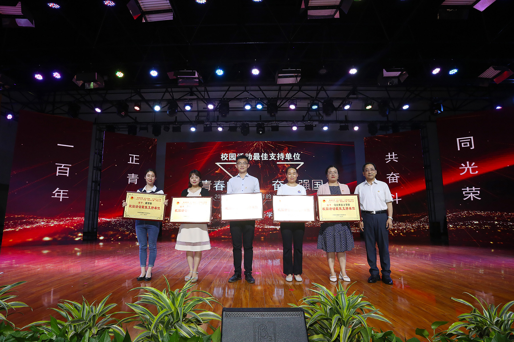 第四篇章中,对新媒体建设先进单位、校园活动最佳支持单位、五四红旗团总支和五四红旗团工委进行表彰。