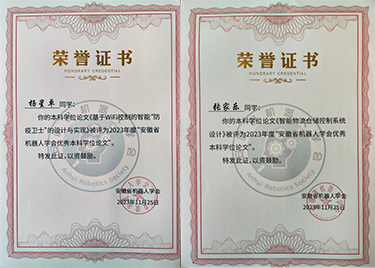 优秀!威尼斯官网2023届学子毕业论文获评2023年安徽省机器人学会优秀本科毕业论文