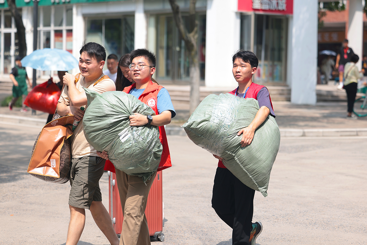 除了党员服务台以外,全校1300余名来自各个学院的志愿者们帮助新生搬运行李,耐心地向新生提供引导、答疑等服务。在学校西门负责迎新的文化与传媒学院韩旭同学说:“看着新同学们带着青涩与憧憬踏入校园,我仿佛看到了一年前的自己。我尽我所能地为他们提供帮助,从指引路线到解答疑惑,希望他们能感受到来自学长学姐的温暖和关怀。”