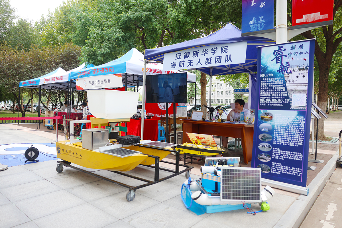 电子工程/智能制造学院迎新处展示了睿航无人艇团队研制的“睿海1号”无人艇,同系列的“睿海2号”无人艇于巢湖袁家山码头圆满完成首次试航,彰显着新华园学生们不凡的创造力,为新生树立榜样作用。