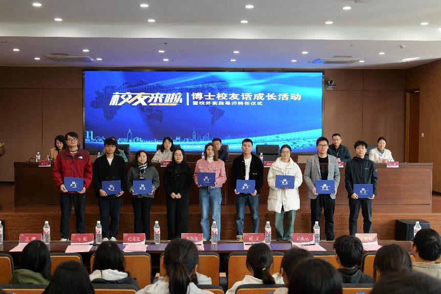 上午9时,第二届博士校友话成长暨校外实践导师聘任仪式在学校科研楼多功能厅举行,副校长戴昕、校长助理盛晓青、电子工程学院/智能制造学院执行院长赵倩青、药学院执行院长黄德垚、外国语学院副院长(主持工作)彭智、城市建设学院副院长(主持工作)汪青、校友工作办公室副主任(主持工作)孙珊珊以及师生代表等200余人参加,仪式由孙珊珊主持。
