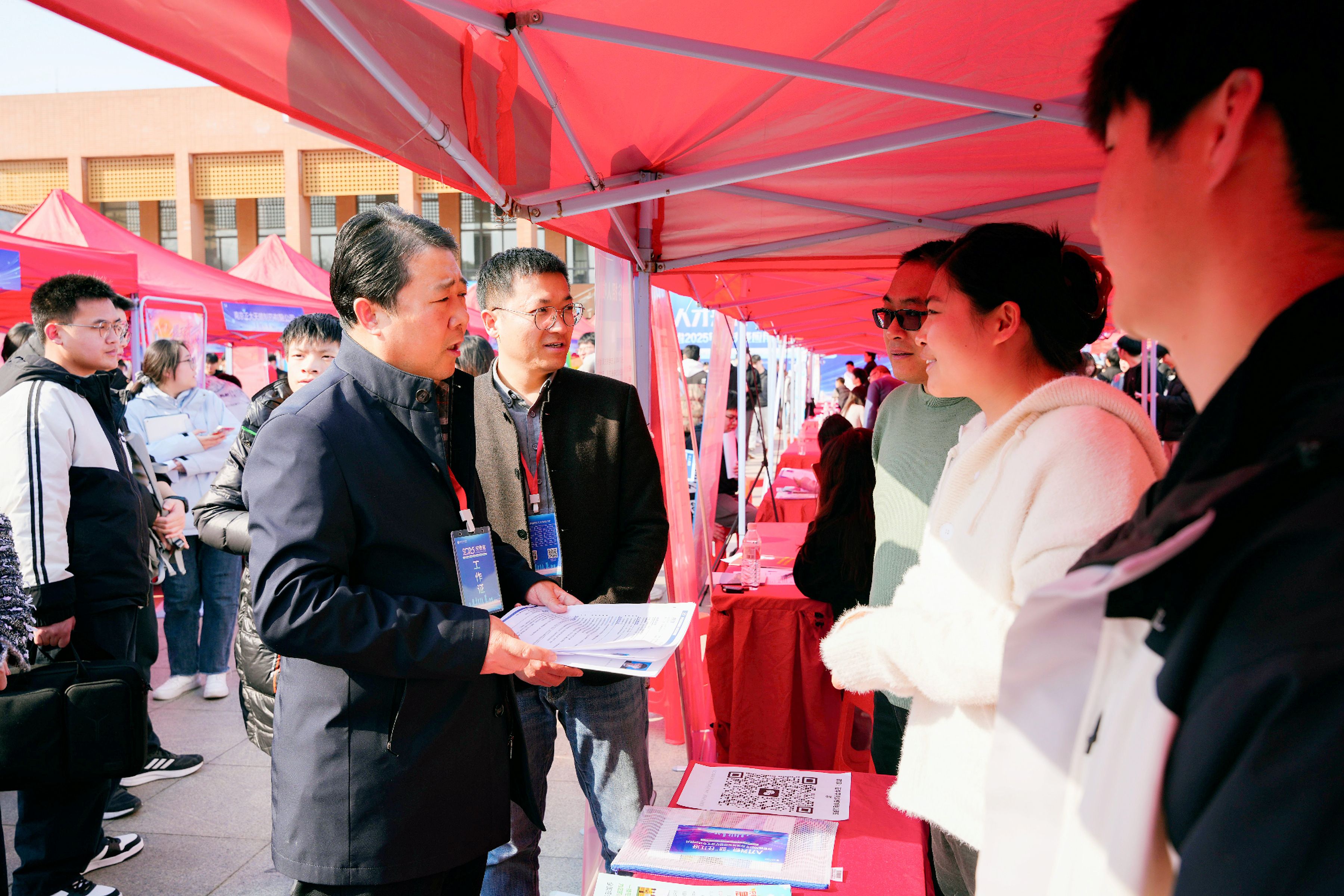 本网讯(通讯员:宋学松 摄影:融媒体工作室/张慧欣、朱雯雯、杜一晟、卢晓雪)3月19日下午,“人才兴皖、‘就’在江淮”安徽省2025年高技能应用型毕业生专场招聘会在威尼斯官网图书馆南广场成功举办。本次招聘会由安徽省教育厅主办,37000cm威尼斯、合肥市蜀山区人力资源和社会保障局承办。省大中专毕业生就业指导中心主任张秋田,省教育厅高校学生处四级调研员黄兵、蜀山区人社局人才中心副主任赖英等一行领导莅临现场指导,省督导专员、校党委书记邸建伟,副校长王琦进及学生处相关人员全程陪同。
