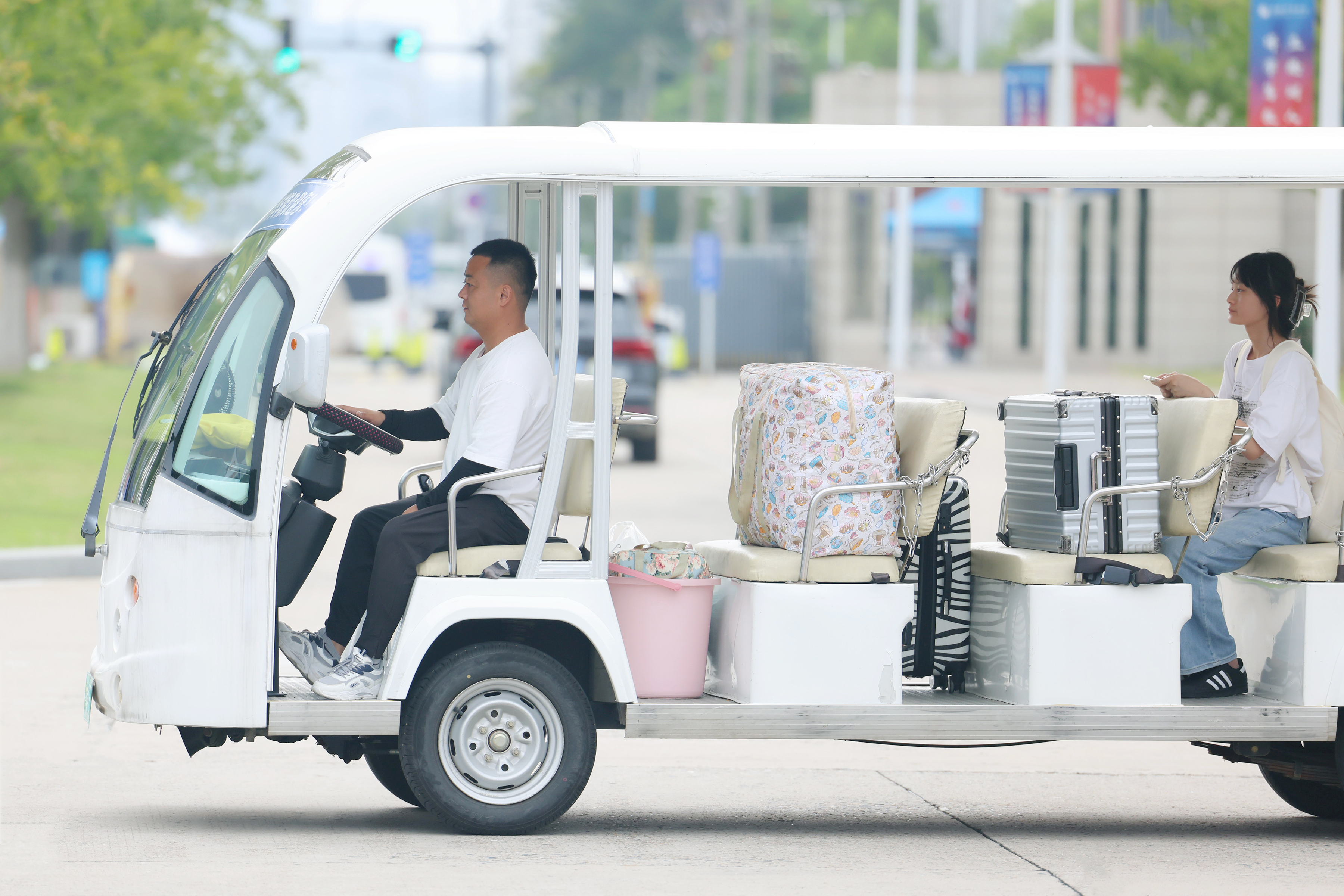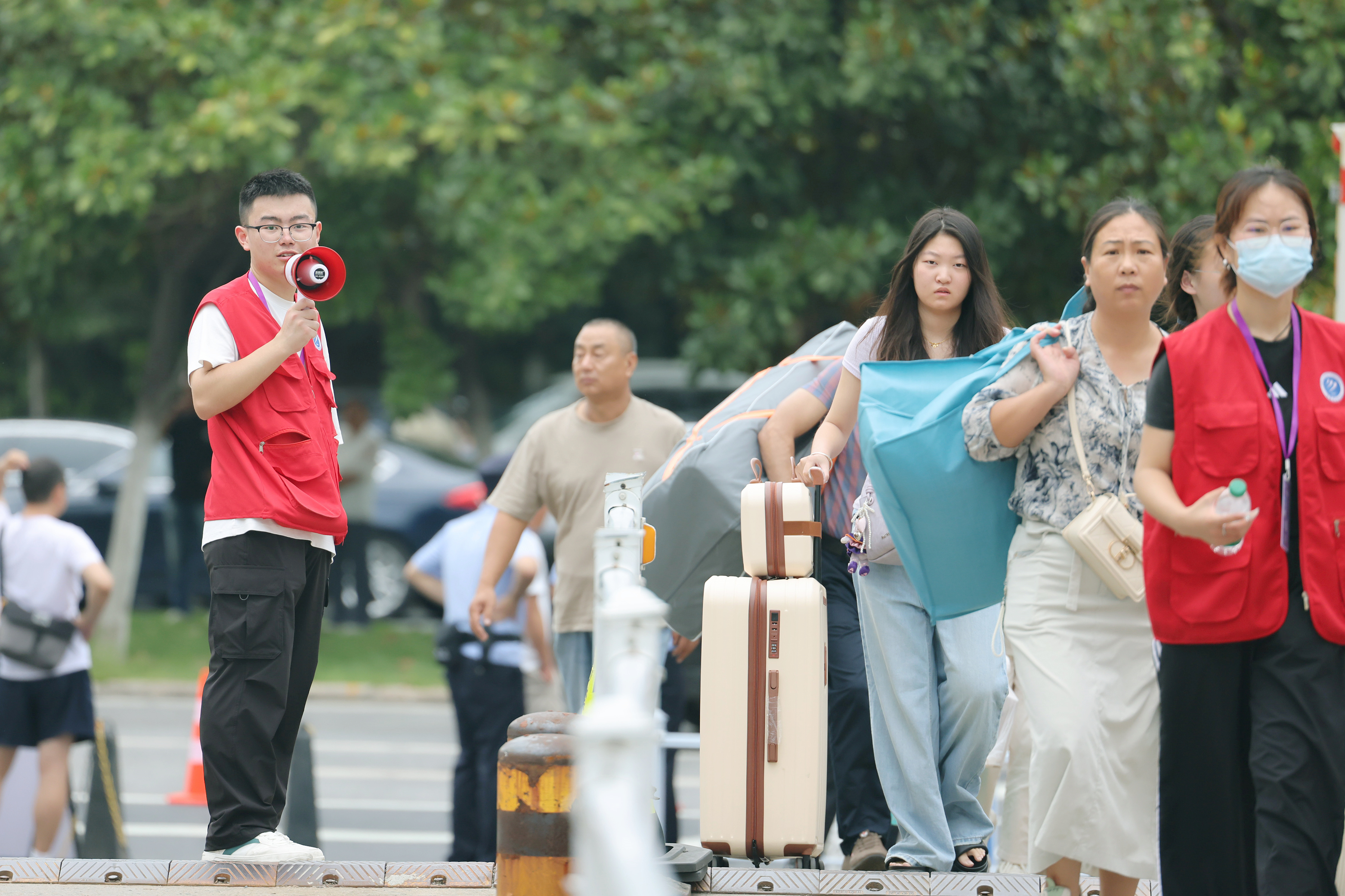 此外,学校还依托辖区和整合全校力量,组建多支迎新志愿服务队,1200余名志愿者经系统岗前培训后 “持证上岗”,负责交通引导、行李搬运、咨询答疑、校园讲解等工作,驻守在校门口、学院大厅、宿舍区等关键点位,构建起全方位、立体化的志愿服务网络。
