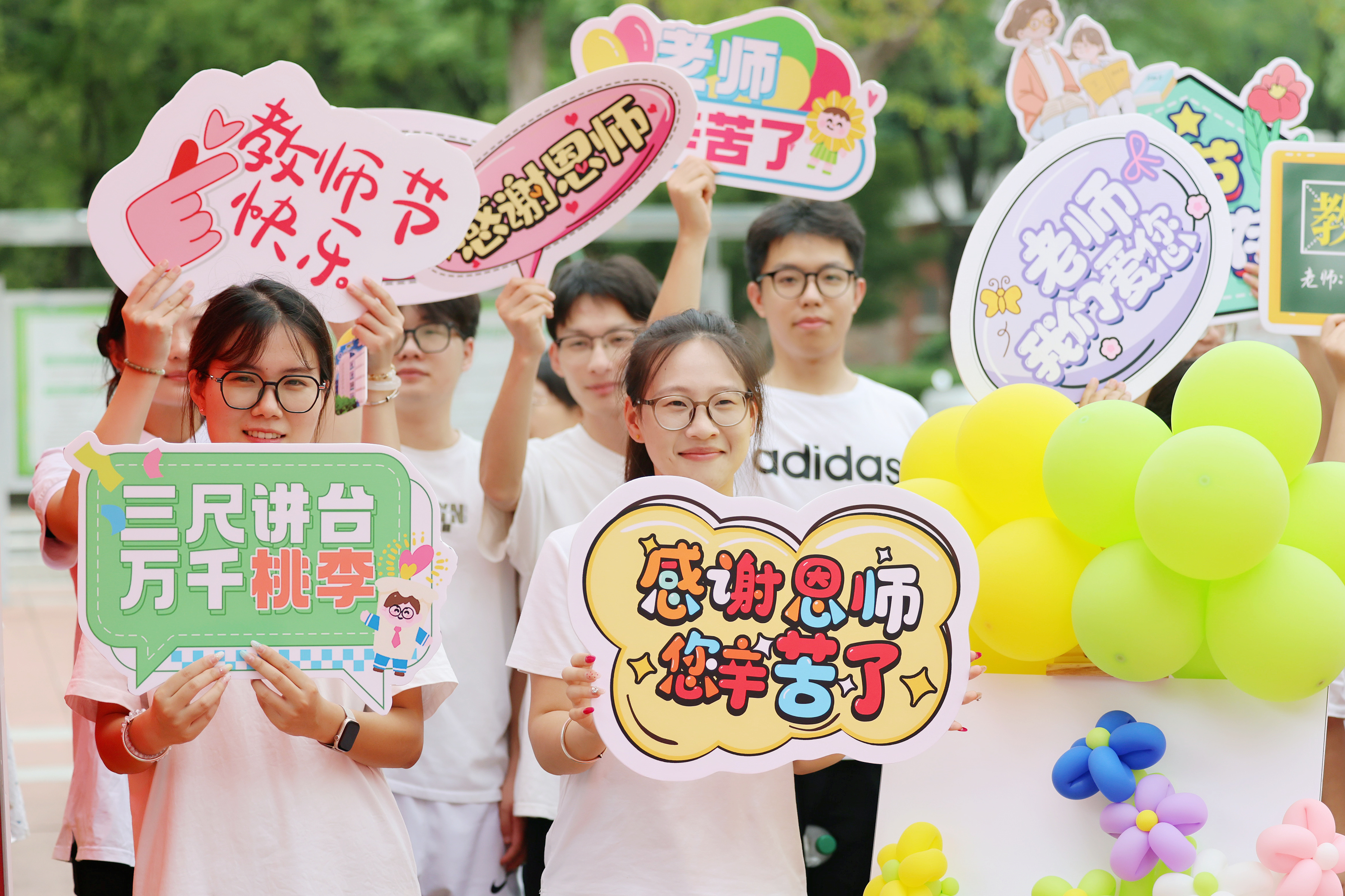 下午1点,蜀麓广场气氛热烈,红毯“走秀”环节拉开了表彰大会的序幕。受表彰的教师们迈着自信从容的步伐,在师生们热烈的掌声和欢呼声中走过红毯,在签名墙前签名留念。