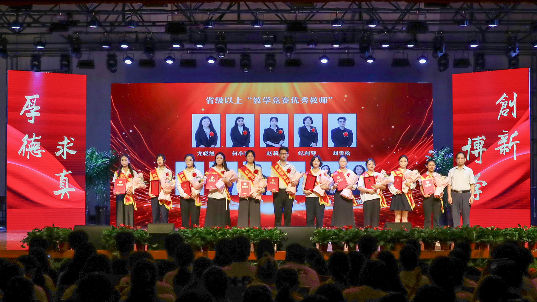 “小时候我以为你很有力,你总喜欢把我们高高举起。长大后我就成了你,才知道那个讲台举起的是别人,奉献的是自己。”表彰大会在音乐学院教师彭智、徐明明及艺术学院学生带来的歌伴舞《长大后我就成了你》中圆满落下帷幕。