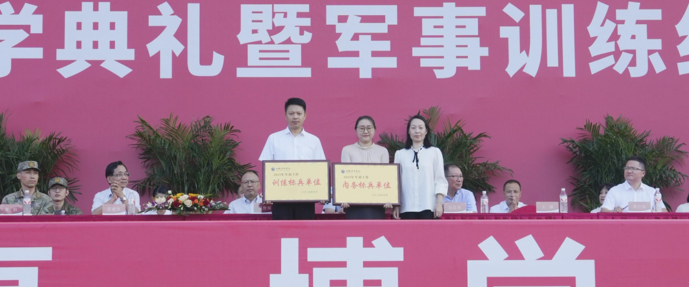 常务副校长王丽为获评军训工作“内务标兵单位”“训练标兵单位”的代表颁奖。
