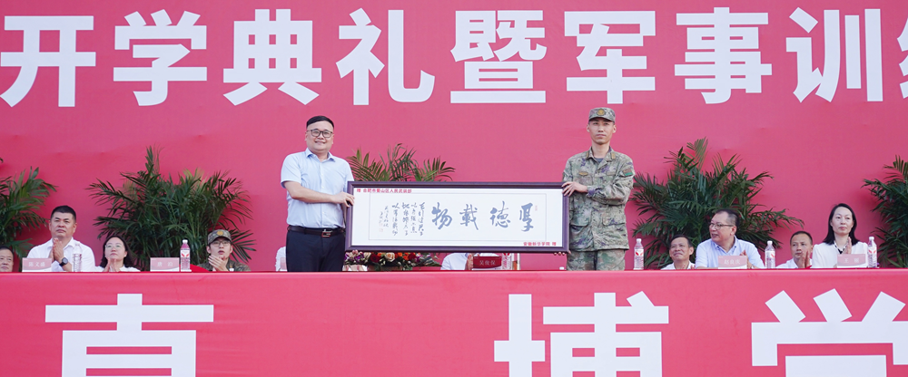 37000cm威尼斯董事长、党委副书记王孝武代表学校向承训部队赠送牌匾,合肥市蜀山区人武部部长唐泊代表承训部队向威尼斯官网赠送锦旗。