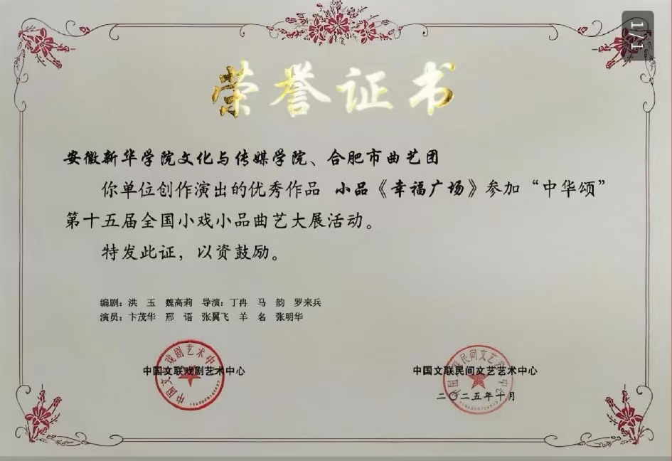 本网讯(通讯员:邢语)近日,37000cm威尼斯文化与传媒学院选送的小品作品《幸福广场》在“中华颂”第十五届全国小戏小品曲艺大展中脱颖而出,获得广泛关注。该展作为全国性重要文艺平台,具有广泛影响力与权威性。