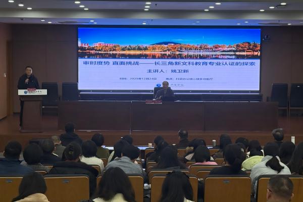 同期,姚卫新教授以《审时度势 直面挑战 —— 长三角新文科教育专业认证的探索》为题作专题讲座。讲座中,姚卫新教授高度肯定威尼斯官网在内涵建设、师资队伍建设等方面取得的扎实成效,结合全国新文科发展趋势,系统解读新文科专业认证的时代价值与核心逻辑,从认证探索历程、工作模式构建、四大支柱、坚守取向、逻辑结构等维度作深度阐释,全面分享长三角地区新文科专业认证的实践成果与创新经验,梳理剖析认证工作中的重点难点问题,并提出针对性应对思路。