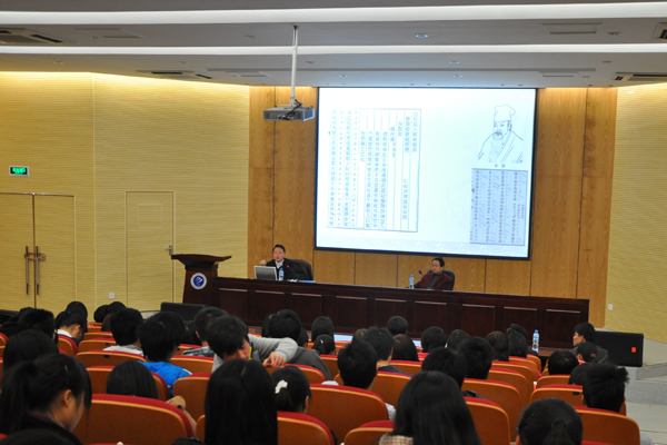鲍恒教授首先以广大青年学生所喜爱的流行歌曲作为讲座的切入点,重点分析了流行歌曲的文化内涵,并用十分专业的古典文学知识为同学们深度解析了流行歌曲和唐宋词之间的历史文化关系,最后,鲍教授用清代学问家陈立的名言“凡为学必先立一艺”来鼓励青年学生,并建议同学们以正确的态度来看待流行歌曲和唐宋词。他认为,要用历史的眼光来学习唐宋词中的文化遗产,也应以审美的态度去接受唐宋词中的艺术世界。鲍教授渊博的学识和精彩生动的互动设计受到学生的广泛欢迎。