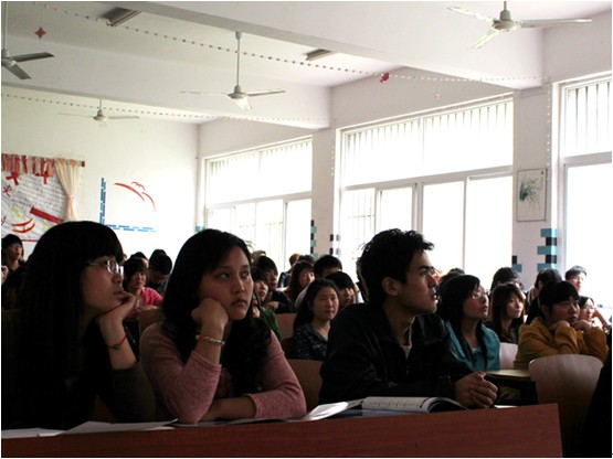 吴蒙首先与同学们分享了由安徽省美术协会组织的访俄代表团在莫斯科和圣彼得堡的书画交流会以及途中的所见所闻。详细生动地讲解了庄严的红场、金碧辉煌的冬宫、大幅的油画和形象写实的雕塑,配合着丰富优美的艺术图片,将俄罗斯异国风情栩栩如生地再现在同学们眼前,让同学们领略到了俄罗斯浓厚的艺术文化底蕴和幽默平淡的风土人情。吴蒙对俄罗斯见闻总结道“建筑连着艺术,艺术连着建筑”,使同学们深受感触。他还向同学们介绍了日本艺术美术经典之作,其中包括书法、绘画、人偶等各种艺术形式,并阐述了当前日本文化产业的快速发展,在动画动漫、艺术创作上均有较大的成果和影响。