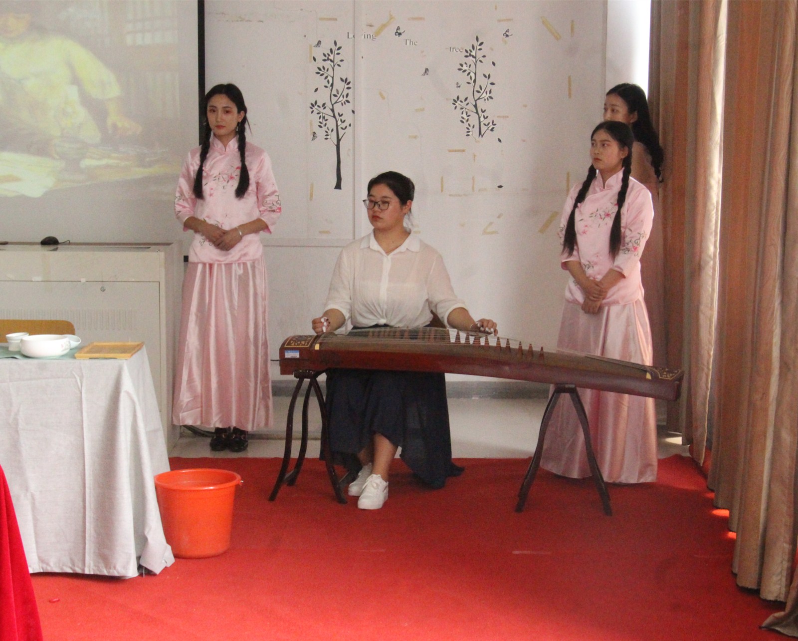 大赛共分为两个环节,茶艺表演和茶文化创新作品展示。在茶艺表演环节中,来自三个不同院系的“诗茶雪”队,“茶忆”队以及“蜀山茶客”队分别表演了《绿雪茶道》《忆往昔》和《缅怀先烈,珍爱和平》的主题茶艺。现场曲调优雅和谐,选手们有条不紊,给大家带来了一场视听盛宴。“诗茶雪”团队将茶艺表演与古诗结合,给人古朴典雅的视觉感受;“茶忆”队以纪念新民学会成立背景为主线,结合古筝演奏,用茶艺表演表达对毛主席的敬意,展现时代精神。“蜀山茶客”团队以古典祭祀为主线,结合茶礼的茶艺表演,表达对为中国抗战而牺牲的先烈的缅怀,现场动作娴熟,主题鲜明,表达了大学生的 爱国精神和对和平的向往。对在茶文化创新作品展示中,“诗茶雪”队的《茶诗书法》,“茶忆”队的《茶忆中国》,以及“蜀山茶客”的《茶马古道》等都备受评委好评。经过评委们认真研究决定推荐“蜀山茶客”队参加省赛。