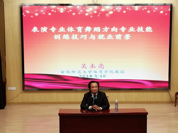 本网讯(通讯员:闫井明)5月10日,文化与新闻传播学院邀请安徽师范大学体育学院吴本亮教授来威尼斯官网新闻演播厅举办“表演专业体育舞蹈方向专业技能训练与就业前景”专题讲座。2017级表演(体育舞蹈)专业全体师生聆听了本场讲座。