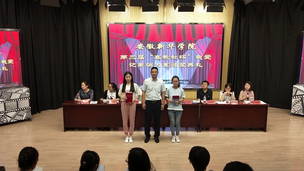 接着,由吴晓群宣读表彰决定,其中,外国语学院石红燕和国际教育学院曹玉婷获得了本次大赛的特等奖。随后,与会嘉宾分别为各位获奖选手及代表颁发奖品和证书。大赛协办方领导毕永军发表了讲话,他指出,相较去年,今年学生们参赛热情极高,各方面水平都有所提高,并鼓励学生们夯实英语基础,提高英语技能,积极参加英语比赛。最后,张杰作总结讲话,在肯定了学生们成绩的同时,还表达了对“高教社”工作的感谢,并期望能有更多的学生参与学科类竞赛,也希望教师们在辅导学生参加比赛的同时能够积累经验,协同并进。