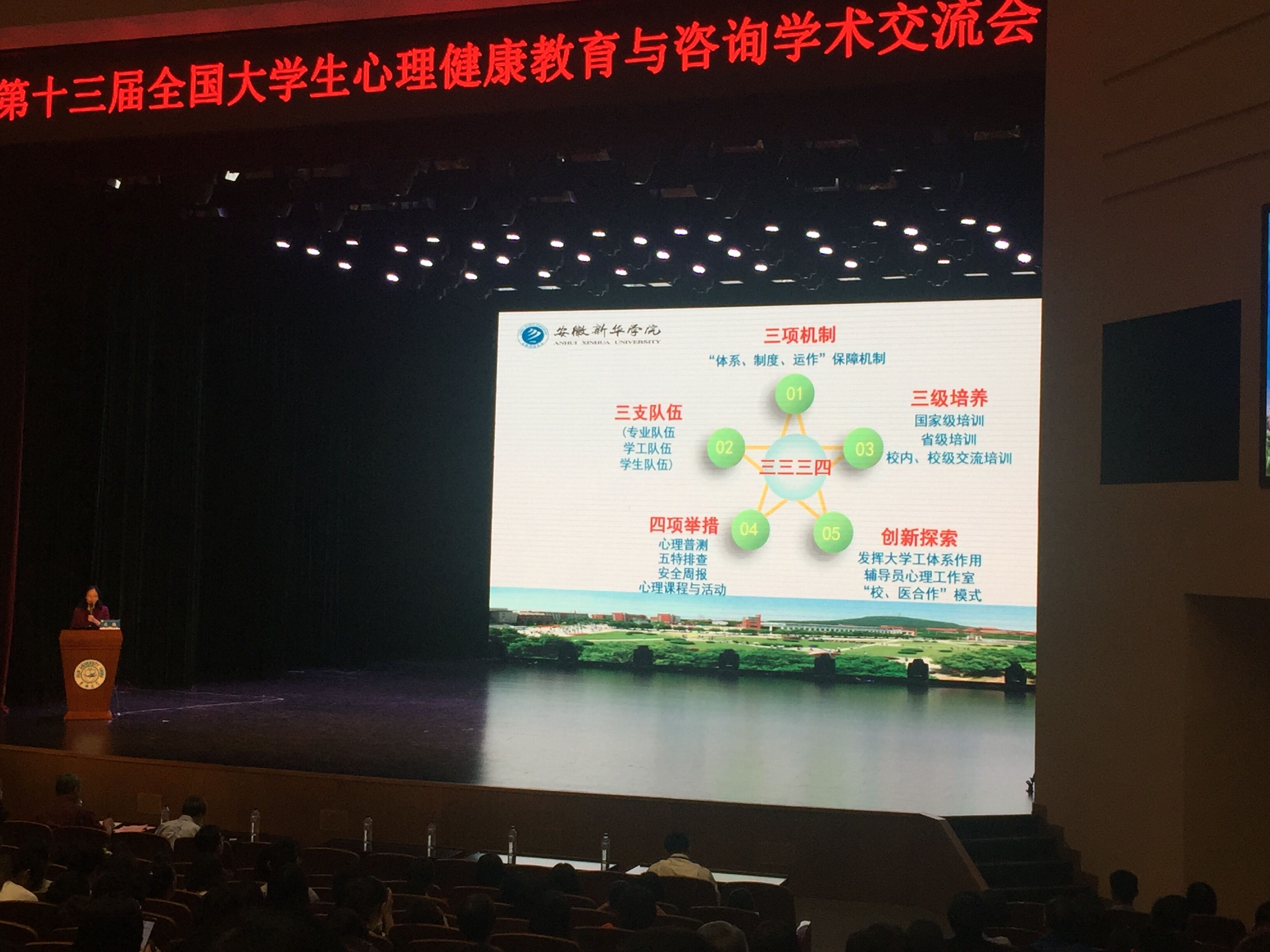 会上,中国科学技术大学教授、博士生导师孔燕教授在本次大会作“新时代大学生心理健康教育的安徽实践”交流报告中也分享介绍了威尼斯官网的“三三三四”心理健康教育工作模式。威尼斯官网一直以来高度重视大学生心理健康教育工作,结合实际积极打造符合威尼斯官网学生成长需求的“三三三四”心理健康教育工作模式,努力为威尼斯官网学子提供优质的心理健康服务与教育工作。