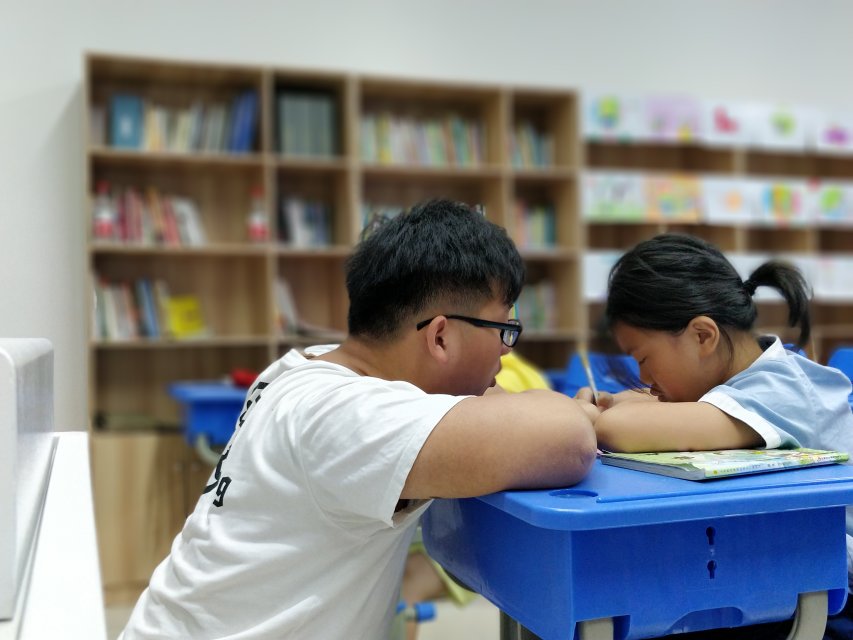 在油墩社区的一间教室内,队员们为社区儿童辅导功课,闲暇之余与其做游戏。通过劳逸结合的方式,在轻松愉悦的氛围中,社区儿童不仅认真地学了进去,也开心地玩了起来。本次活动不仅调动了社区儿童的学习热情,也让队员们在辅导孩子们学习时找到了自我提升的方法。