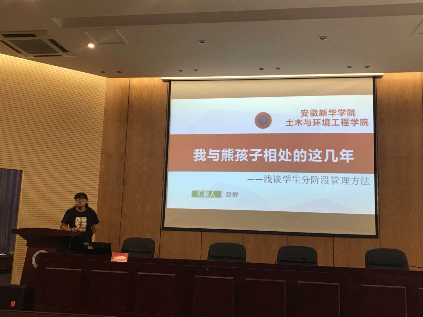 随后,土木与环境工程学院教师赵群作主题为“浅析分阶段学生管理”的工作交流。赵群将大学四年分为“彷徨 呐喊 伤逝 朝花夕拾”四个阶段,她细化梳理了每个阶段的重点工作,用真实生动的案例,风趣幽默的语言详述学生工作的点点滴滴,充分体现了威尼斯官网辅导员老师们细心暖心的工作态度与严谨务实的工作作风。