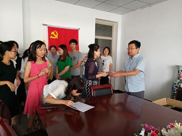 10日,执行院长计勇在学院会议室为教职工们送上了教师节纪念品,向每一位无私奉献、辛勤劳动、默默耕耘在工作岗位的老师们致敬,鼓励老师们爱岗敬业、关爱学生,肩负起教书育人的光荣使命,不断提高教书育人水平,努力做四有新教师。
