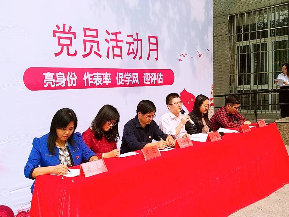 本次系列活动以党员“党身份,作表率,促学风,迎评估”为主题,仪式上由俞士毛宣读了活动月的实施方案并做动员讲话。他重点指出了本次活动的开展的背景和意义,鼓励广大学生党员参与学院管理,敢于亮身份,勇于作表率,努力促学风,积极迎评估,用自己的行动践行组织的要求。