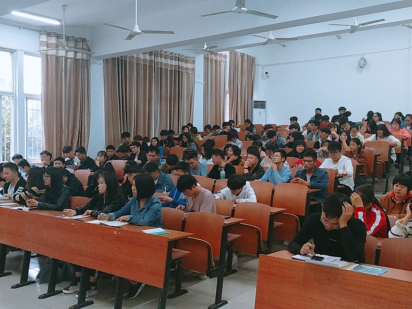 本次大会由信息工程学院学院新闻中心教师魏居娴主持。她首先阐述了本次培训的目的和意义,紧接着通过严谨的板书和精彩的概述,全面而深刻地讲解了“什么是新闻”,并着重讲解了新闻的要素、结构、撰写注意事项等各方面问题。整个讲授过程中,内容简明扼要,清晰明了,认真思考积极记录,受益匪浅。大会的最后,魏居娴又对新闻摄影进行了详细介绍,并分享了2017年世界新闻摄影大赛(荷赛)的获奖作品,以帮助与会学生更好地了解新闻构图。