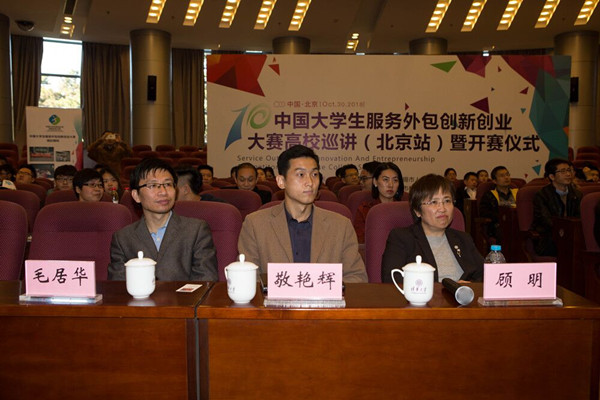 在开赛仪式上,教育部、商务部领导,国家服务外包人力资源研究院领导,《服务外包》杂志负责人,大赛组委会和专家委员会代表,命题企业代表,参赛院校师生代表,新华社、中国日报、国际商报等媒体记者150余人参加活动,共同启动新一届大赛。