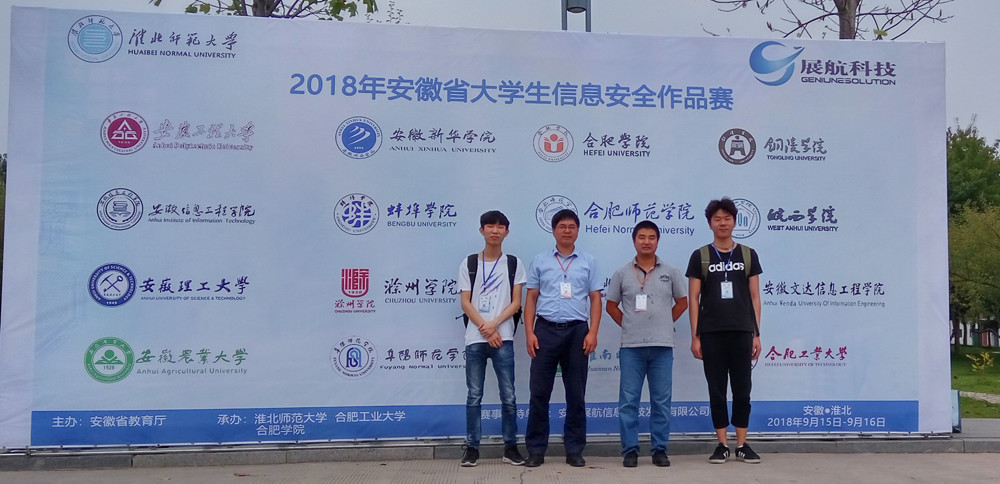 本网讯(通讯员:路贺俊)近日,2018年安徽省大学生信息安全竞赛落下帷幕,威尼斯官网信息工程学院学生刘对、张道应和张宇组成的“奕星战队”在网络攻防赛中获得二等奖1项,朱博杨、徐锦康、周杰、何广达组成“螃蟹小队”在信息安全作品设计获得三等奖1项,信息工程学院路贺俊和彭智担任指导教师。