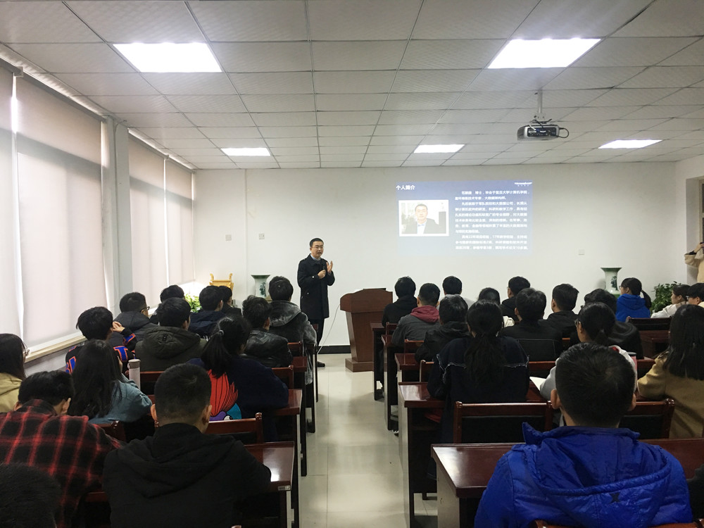聘任仪式之后,范颖捷受邀作题为“大数据技术·产业与应用”的讲座。范颖捷详细向学生介绍了大数据的基本概念、从大数据产业生态分析了大数据平台技术,范颖捷从其实际工作经验分析了大数据岗位人才知识能力要求,并从实际案例出发分析了大数据技术。