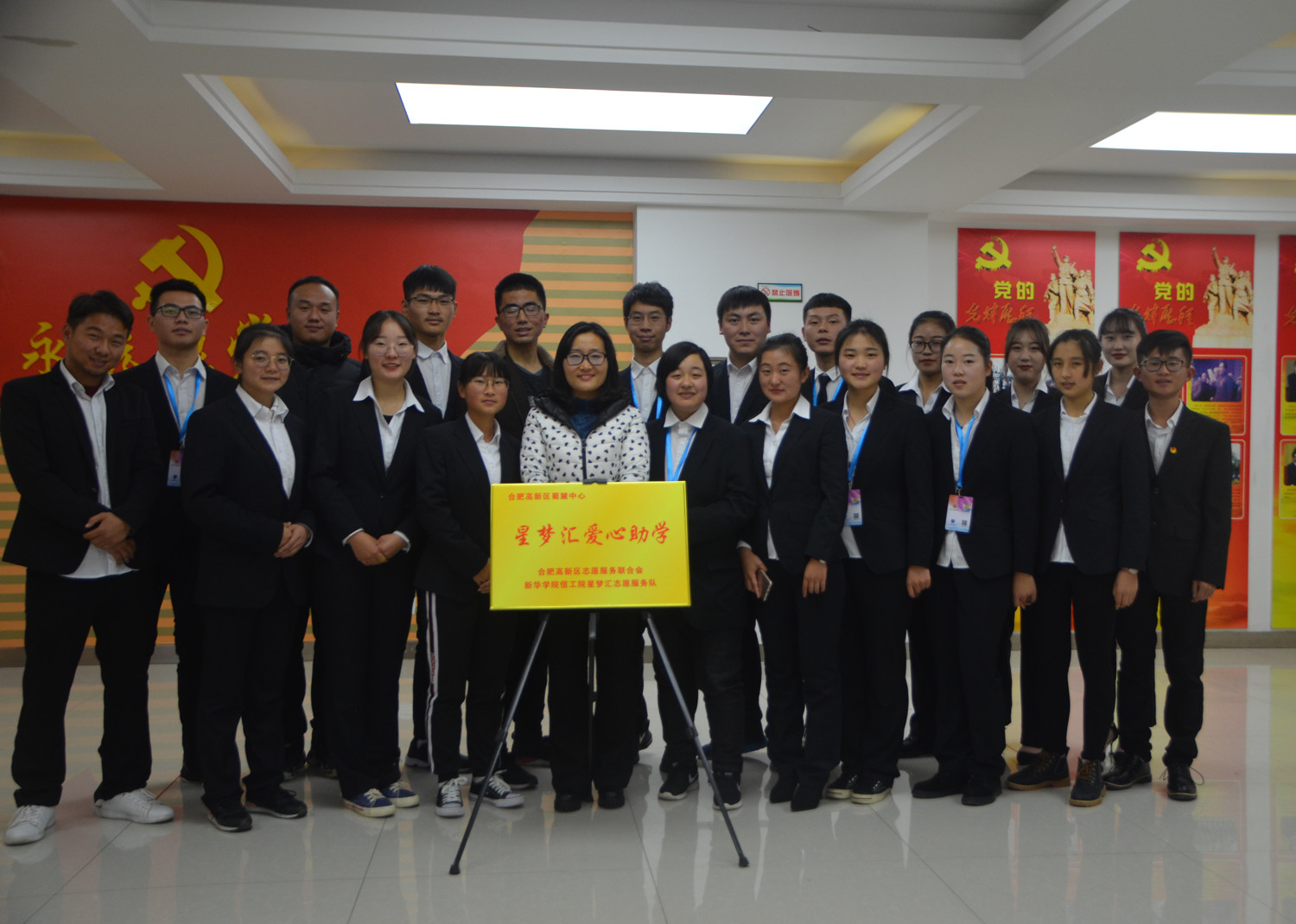 参加本次启动仪式的有蜀麓中心副主任吴改和,蜀麓中心科长叶春梅,合肥高新区志愿者联合会主任姬国印,信息工程学院教师李苗,威尼斯官网青年志愿者联合会2017级优秀志愿者代表胡超、田荷卉、谢磊、张衍,以及“星梦汇”全体成员。