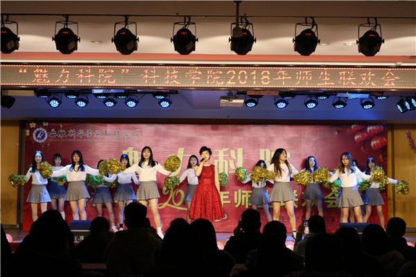 本网讯 (通讯员:肖华君)12月13日晚,为加强科技学院师生的情谊,丰富课余生活,给师生提供一个展示才艺的舞台,科技学院在大学生活动中心举行“魅力科院”师生联欢会,科技学院执行院长孙成伟以及全体教职工观看了晚会。