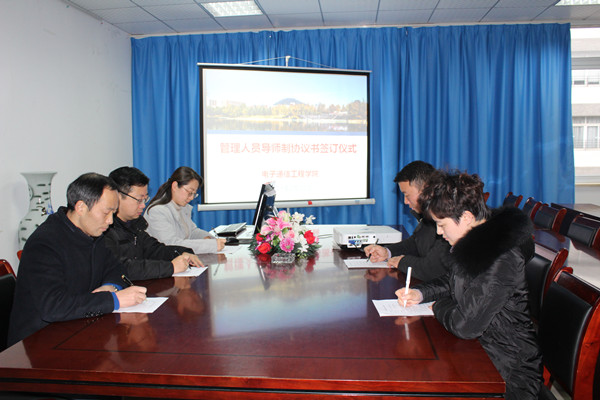 本网讯(通讯员:李长凯)为进一步加大管理队伍建设力度,全面提升管理队伍工作水平。2月22日下午,电子通信工程学院举行2019年管理人员导师制签约仪式。电子通信工程学院执行院长计勇、副院长舒敬荣及相关教师参加仪式,三位新入职的管理人员分别与指导教师签订了对接协议书。