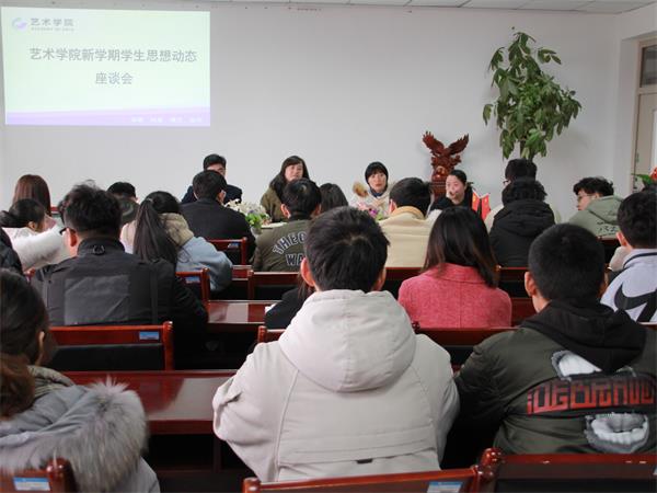 为更好地服务广大学生,及时掌握学生们新学期的各项思想动态,创平安稳定校园,艺术学院召开新学期学生思想座谈会。各班级学生代表针对新学期班级同学的思想状况、课堂表现、寝室生活等方面进行了发言,有困惑、有忧虑,有分享、有帮扶。与会教师根据自身工作模块,就学生的思想觉悟、课程安排、日常管理、职业规划等方面做出详细的解答与指导。
