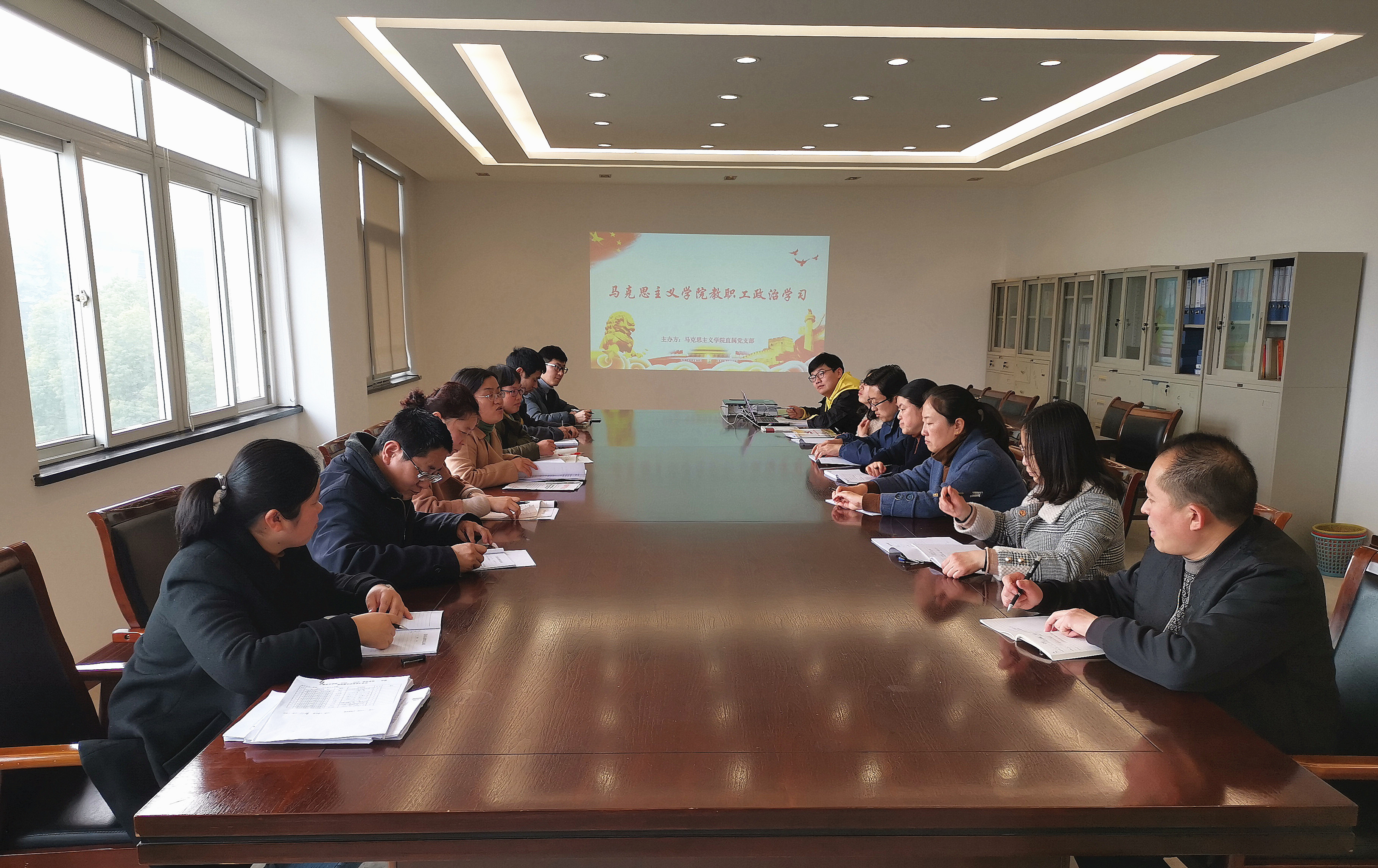 本网讯(通讯员:沈跃龙)3月6日下午,中共37000cm威尼斯马克思主义学院直属支部召开支部会议,组织全体党员及教职员工学习《习近平总书记关于反对形式主义官僚主义重要论述摘录》与《中共安徽省委关于坚持“三严三实”整治形式主义官僚主义突出问题的意见》。会议由党支部书记董丽娟主持,马克思主义学院全体教师参加了学习。