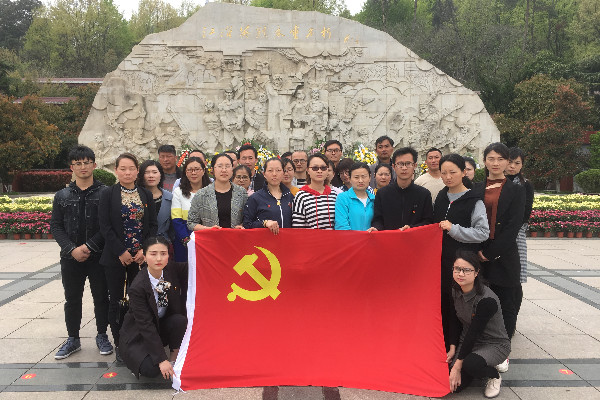 最后,通识教育部直属党支部全体党员在革命烈士纪念碑下集体合影留念。