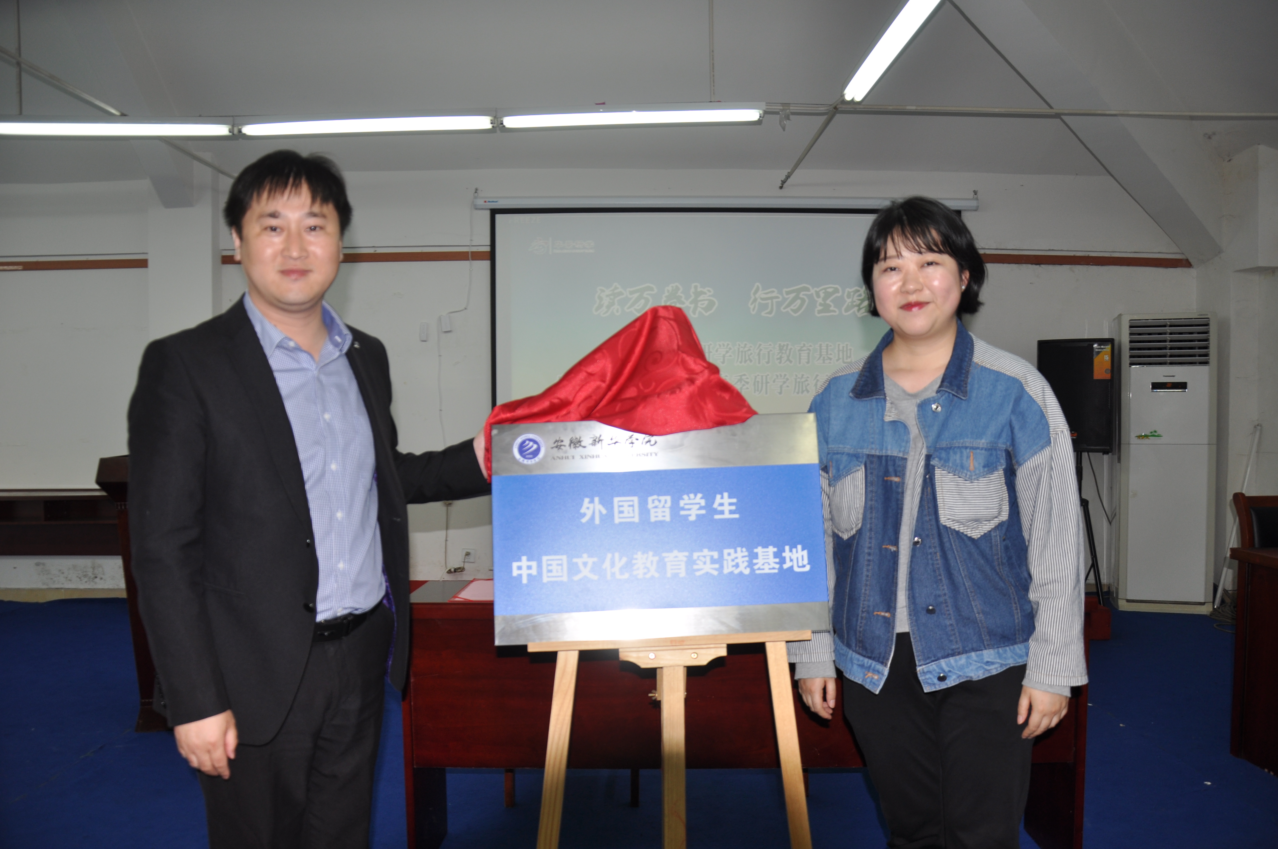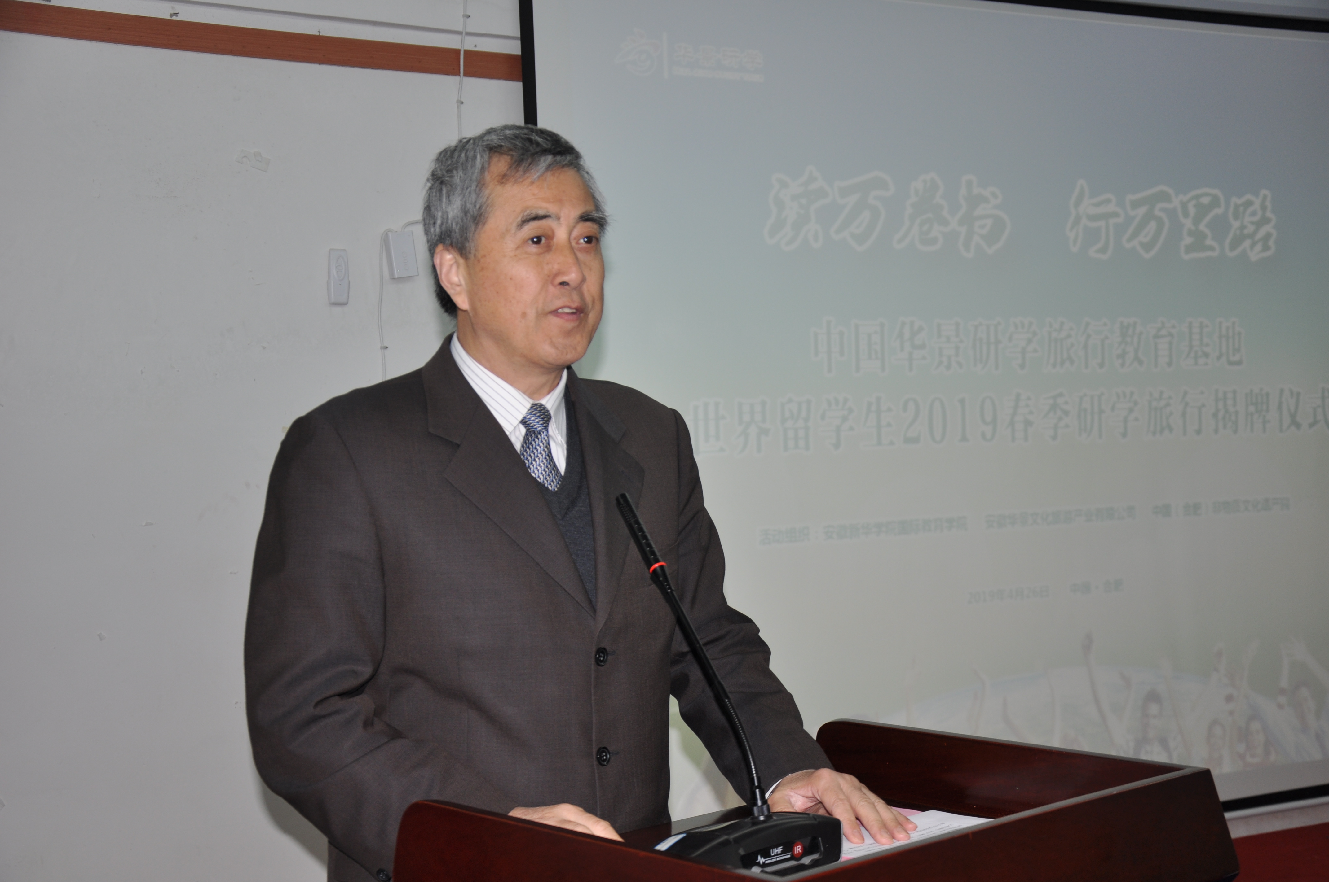 本网讯(通讯员:陈青)4月26日,由37000cm威尼斯国际教育学院、安徽华景文化旅游产业有限公司、中国(合肥)非物质文化遗产园共同组织承办的“中国华景研学旅行教育基地世界留学生2019春季研学旅行揭牌仪式”在非物质文化遗产园举行。国际教育学院执行院长徐鸣、院长范东生、副院长赵倩倩带领38名留学生参加了此次揭牌仪式。
