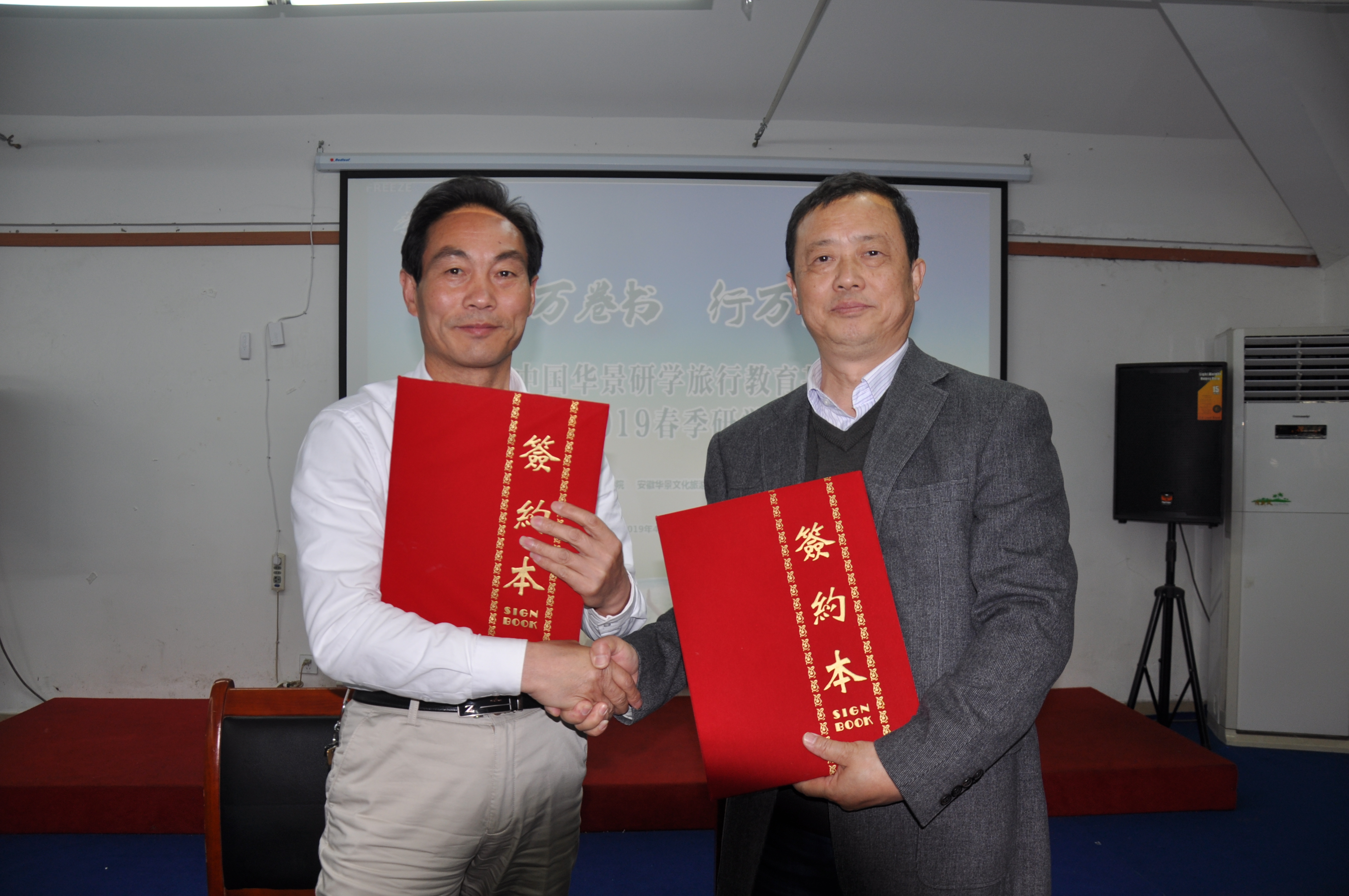 随后,非遗园副总经理王化章致欢迎词,他说,非遗园以传播中国传统文化、民俗文化为己任,积极向世界青少年群体传播中国文化,传递非物质文化遗产,相信此次活动可以加深来华留学生对中国文化,尤其是对安徽文化的了解和体验,让留学生们更加喜欢中国,喜欢中国的优秀传统文化。非遗园给留学生们准备了一场精彩的中国传统文化表演——变脸。一瞬间能变出十多张脸,令人惊叹。表演结束,37000cm威尼斯国际教育学院执行院长徐鸣与安徽华景文化旅游产业有限公司副总经理孟鑫共同签订战略合作协议,本次签约合作积极响应了国家提出的文化“走出去”战略和教育部“知华、友华”的来华留学生培养方针,有利于弘扬传播中国优秀传统文化。之后,徐鸣与非遗园副总经理高明新共同为本次活动揭牌。