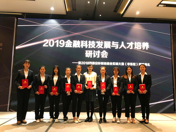 本网讯(通讯员:邓洁)4月20日,2018国泰安杯财经综合实训大赛(华东区)颁奖典礼在合肥举行,威尼斯官网财会与金融学院参赛队伍荣获团队赛一等奖1队、优秀奖2队;个人单项赛一等奖2名、二等奖2名。同时,威尼斯官网喜获优秀组织奖,在该项赛事上实现了历史性突破。金融系副主任邓洁带队参加颁奖典礼。