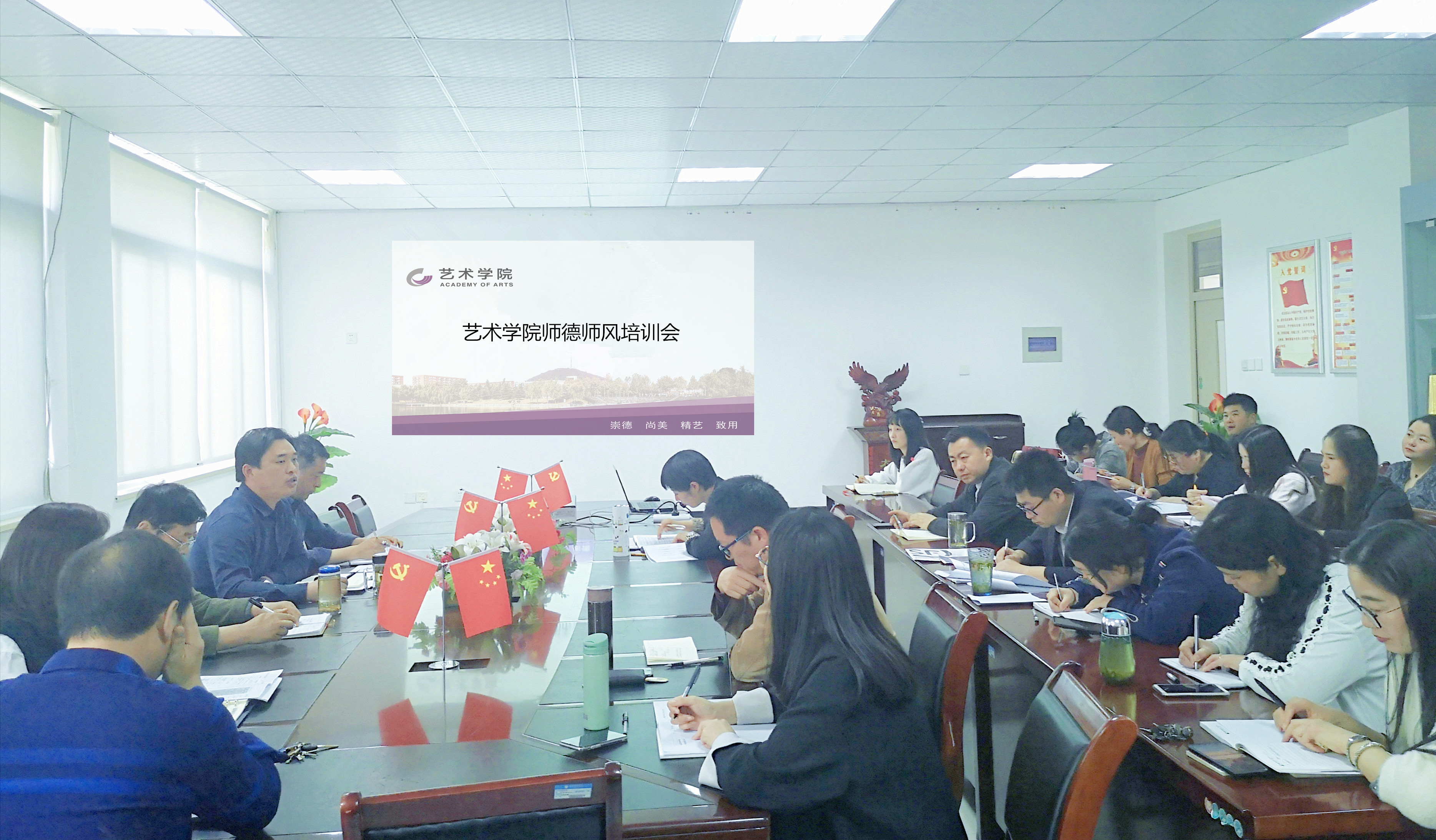 本网讯(通讯员:黄梦、陈阳)为进一步贯彻落实十九大精神,抓实师德师风建设,5月8日,艺术学院召开师德师风培训会。艺术学院执行院长许存福、院长江河、院长助理刘刚、郑妮及全体教职工参加本次会议,会议由许存福主持。