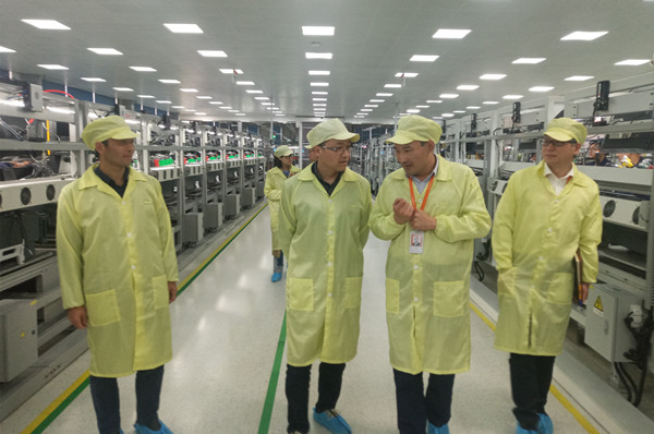 考察组首先参观了公司的生产部门和测试部门,陈增虎介绍了上述部门目前的生产任务、技术更新以及未来人才需求等详细情况。然后考察组与公司领导在会议室开展了面对面的座谈交流。计勇指出,阳光电源股份有限公司是学校的重要合作对象,双方有着各自的资源和优势,完全具备深入开展校企全面合作的条件和基础,特别提到共建校企合作“阳光班”,并尽快商谈和细化相关合作条款,以实现“订单式”委托培养。王琦进结合学校当前实际,提出希望与对方在优质实习基地建设、横向课题研究、应用型课程以及教材建设等领域开展对口交流合作。陈增虎对上述提出的合作意愿表示赞同,并建议以当前双方需求较为紧迫的优质实习基地建设作为切入点率先发力,逐步细化直至落地实行。
