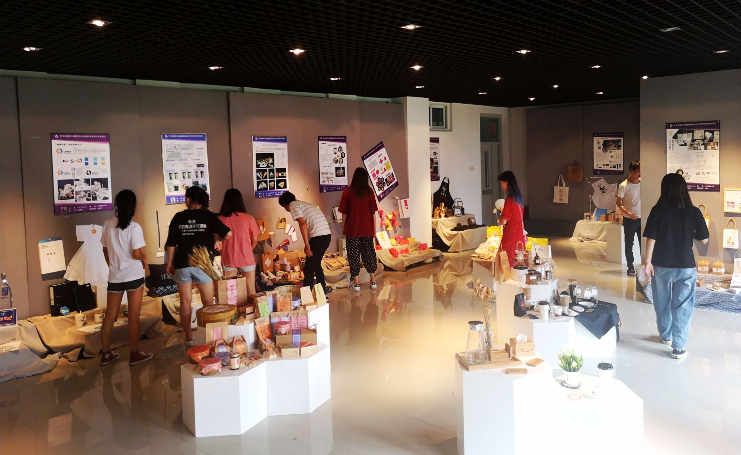 5月17日,艺术学院2019届毕业设计精品展在实验四号楼5楼展览厅正式开幕。艺术学院始终坚持教学、实践、科研相结合,鼓励学生参加各项专业比赛,以骄人的成绩,展示青春风采。此次展览涵盖视觉传达设计、环境艺术设计、产品设计、动画共四个本科专业毕业生设计作品。毕业设计产品丰富,风格多样,是艺术和技术的交融体现,其中特色包装、概念产品、动漫形象,无论是从造型、寓意、色彩搭配、视觉冲击力等方面都给人震撼,让人不由自主感叹“原来艺术也可以这样”。毕业设计成果展是学院师生共同努力的展现。从创作前期的调研考察、设计构思、设计理念的生成,到中期多次的方案修改与调整,到后期的作品完成,都凝聚着老师和学生大量的心血。作品反映出学生们对艺术设计的深度思考和创造精神,也反映出学生们具备较好的专业知识和技能。本次毕业作品展是学生们四年艺术学习的成果,为四年大学生活划上了圆满的句号。