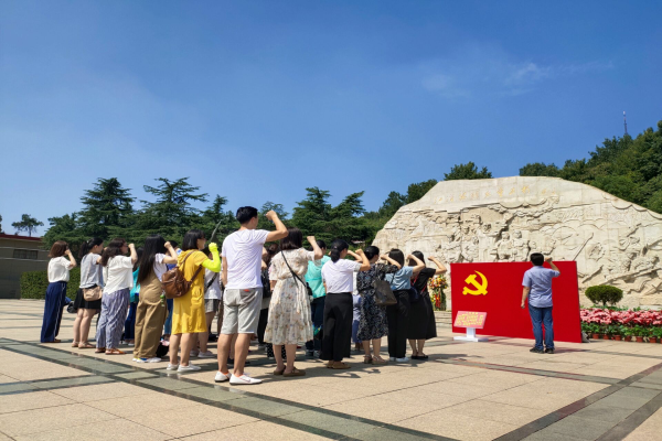 随后,在刻有“江淮英烈永垂不朽”纪念碑前,大家怀着无比崇敬的心情面对鲜红的党旗,重温入党誓词“我自愿加入中国共产党,拥护党的纲领,遵守党的章程……”宣誓铿锵有力,表达了大家“不忘初心、牢记使命”的坚定政治信念。仪式过后,大家默默地走向纪念碑,绕行一圈,瞻仰纪念碑,缅怀先烈英勇业绩,追思先烈革命精神,以此来表达对先烈们的缅怀之情。