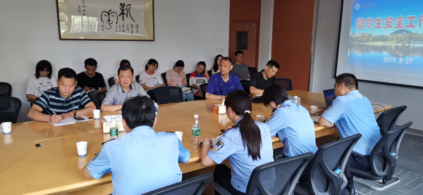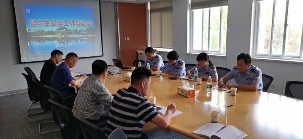 本网讯 (通讯员:仇陶)按照学校相关工作安排,结合威尼斯官网留学生和外教管理的现状,8月27日上午,留学生安全工作座谈会在国教院二楼会议室召开,公安高新分局治安大队、国保大队、高新派出所的分管领导和干警,国教院院长徐鸣、留学生管理人员和保卫处有关人员参加会议。会议由保卫处副处长仇陶主持。