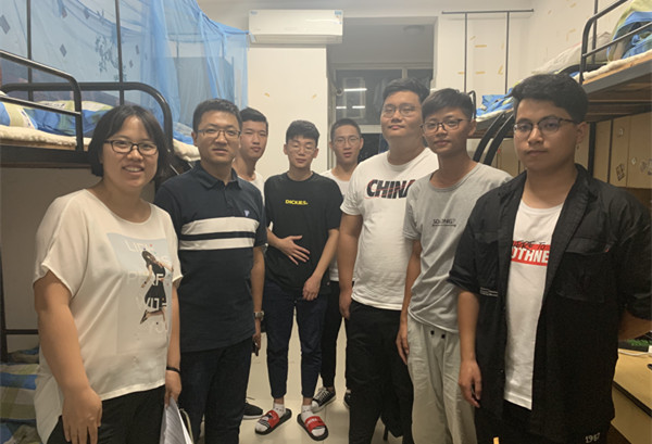 为切实做到让家长放心、让学生安心,8月31日晚,电子通信工程学院领导班子和辅导员们一起深入新生宿舍进行慰问,真正体现了学院上下同心协力,为“新”而动。院领导们亲切地同新生交谈,询问大家来自哪里、入学报到是否顺利,是否适应学校环境等,此外,辅导员们还特别提醒大家要提高自我保护意识,不要轻易相信来宿舍推销商品的人员,谨防上当受骗。同时要注意保管好自己的贵重物品。其中王琦进院长特别嘱咐同学们要相互帮助,相互理解,尽快适应大学生活,更好地进入角色。